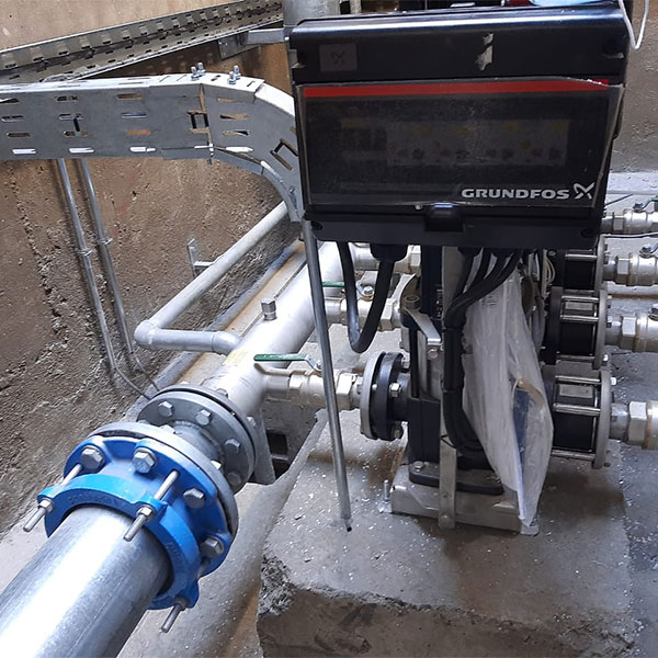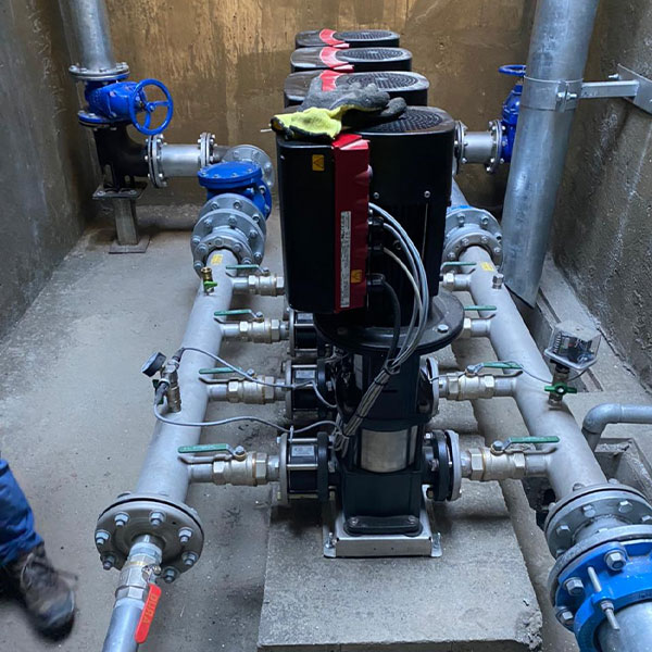Proyecto contempla Sistema Booster Serie Hydro Multi E compuesto por 5 bombas verticales con Variadores de Frecuencia incluidos, Motores Alta Eficiencia IE5 de Imanes Permanentes, Proyecto integrado con la marca Grundfos, tecnología europea procedente desde Dinamarca.